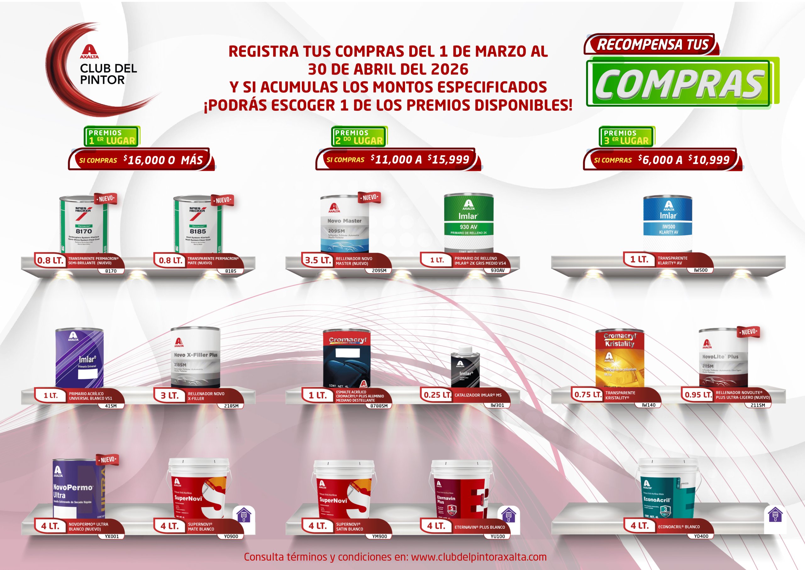 Términos y condiciones: Análisis y selección de maestros ganadores de acuerdo con el reporte de compras registradas por el personal en el portal del programa. Los ganadores serán notificados vía WhatsApp y distribuidores vía Mail. Los ganadores podrán seleccionar solo un producto de acuerdo con la lista por monto especificado. No aplica con otras promociones. Vigencia del 1 de enero al 28 de febrero del 2026. *Promoción valida en México